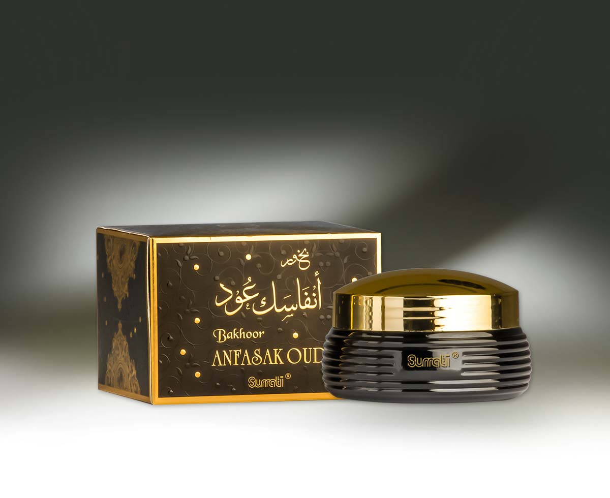 A more gentle way of enjoying the aroma of Oudh, Bakhoor is the name given to Agarwood chips that have been soaked in fragrant oils like jasmine and sandalwood to soften and sweeten the heavy scents, or amber and citrus essential oils to add crisp notes to the rising vapours. Often the pieces are burnt over charcoal to release fragrant fumes to fill a room.