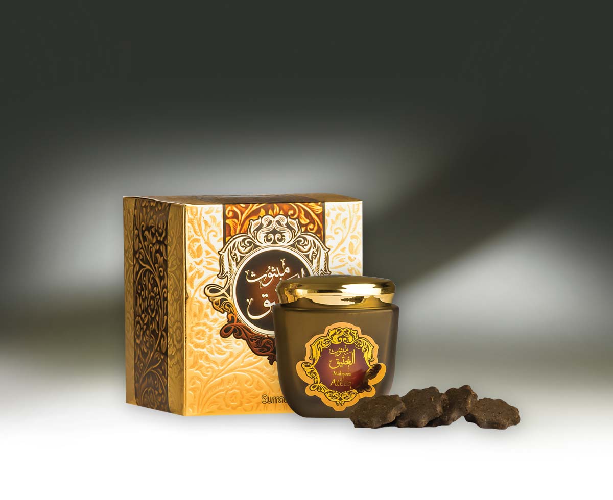 A more gentle way of enjoying the aroma of Oudh, Bakhoor is the name given to Agarwood chips that have been soaked in fragrant oils like jasmine and sandalwood to soften and sweeten the heavy scents, or amber and citrus essential oils to add crisp notes to the rising vapours. Often the pieces are burnt over charcoal to release fragrant fumes to fill a room.